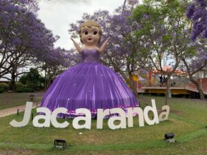 Team Canary and I squeezed in a parkrun in Coffs Harbour and went on to spend the next few days in Grafton. We timed it perfectly to coincide with the Jacaranda Festival. The trees, which were planted in the 1880s, are now well established and mature and cover the whole town purple. We participated in the Australian record attempt for the most people doing the Hokey Pokey (failed miserably) and took photos with Jaca Jill, the 6‑metre‑high, 6‑metre‑wide Kewpie doll dressed in purple.
